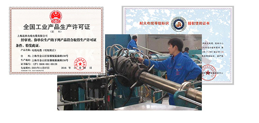 1.中国国家质量监督总局颁发生产许可证 2.通过GB12706-2002标准(等效IEC502标准)和GB9330-88检测 3.阻燃及耐火特性符合国家标准要求 4.2006年通过ISO9001-2000国际标准认证 5.公司检测中心拥有先进的检验检测装备。